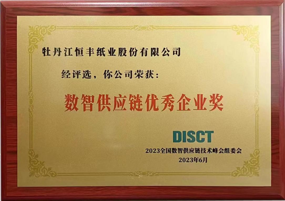 恒豐紙業(yè)獲評2023年數(shù)智供應(yīng)鏈優(yōu)秀企業(yè)獎