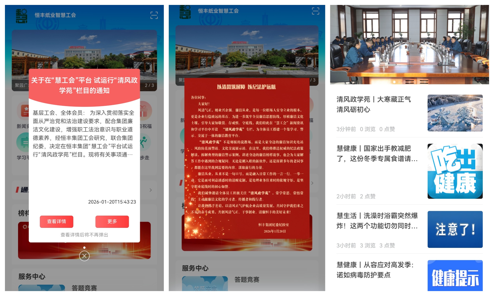 恒豐集團(tuán)紀(jì)委“清風(fēng)政學(xué)苑”欄目在“慧工會(huì)”平臺(tái)正式上線試運(yùn)行