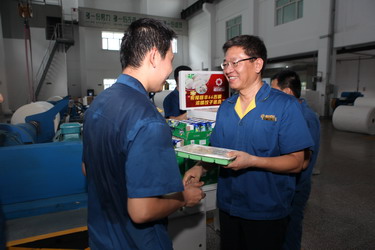 7月31日,公司領(lǐng)導(dǎo)班子成員、總監(jiān)分別來(lái)到各生產(chǎn)現(xiàn)場(chǎng),為員工們送上濃情餃子。