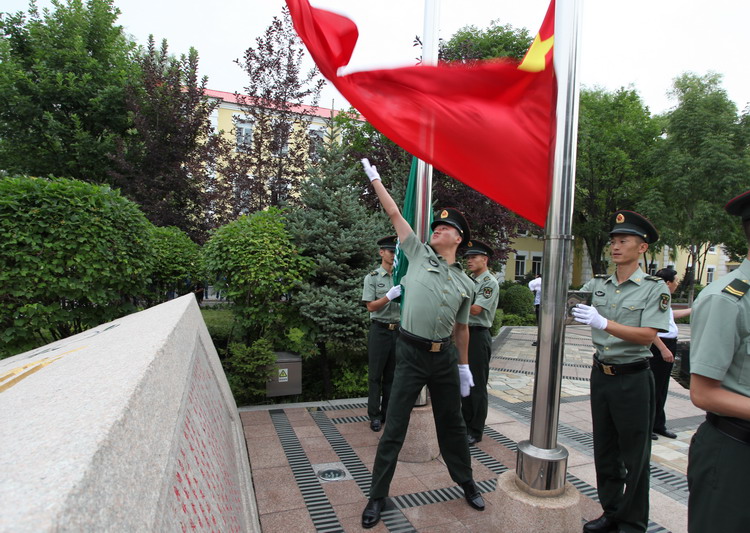 上午7時(shí)20分,升旗儀式正式開始。英姿颯爽的升旗隊(duì)邁著整齊的步伐,護(hù)衛(wèi)國(guó)旗、司旗走向升旗臺(tái)。伴隨著莊嚴(yán)嘹亮的《義勇軍進(jìn)行曲》和《恒豐之歌》,鮮艷的五星紅旗及公司司旗在廣場(chǎng)上空冉冉升起。聚園廣場(chǎng)參加升旗儀式的員工肅然而立,凝望著徐徐升起的五星紅旗和公司司旗。